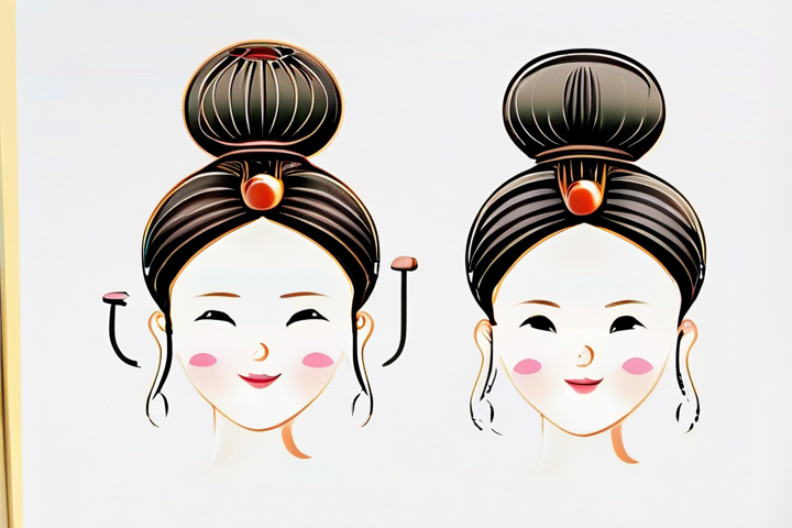 - 双环髻的形成:在发髻的基础上,将头发分成两部分,分别围绕头部两侧,形成一个对称的双环状。